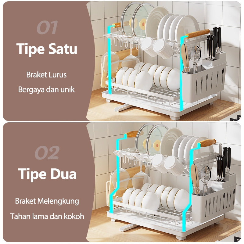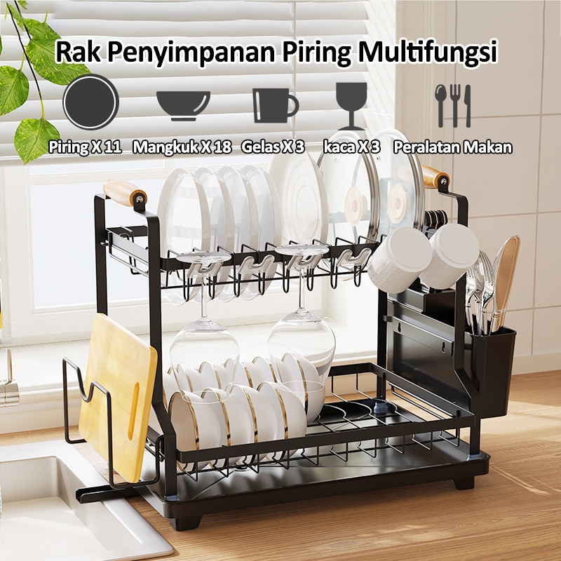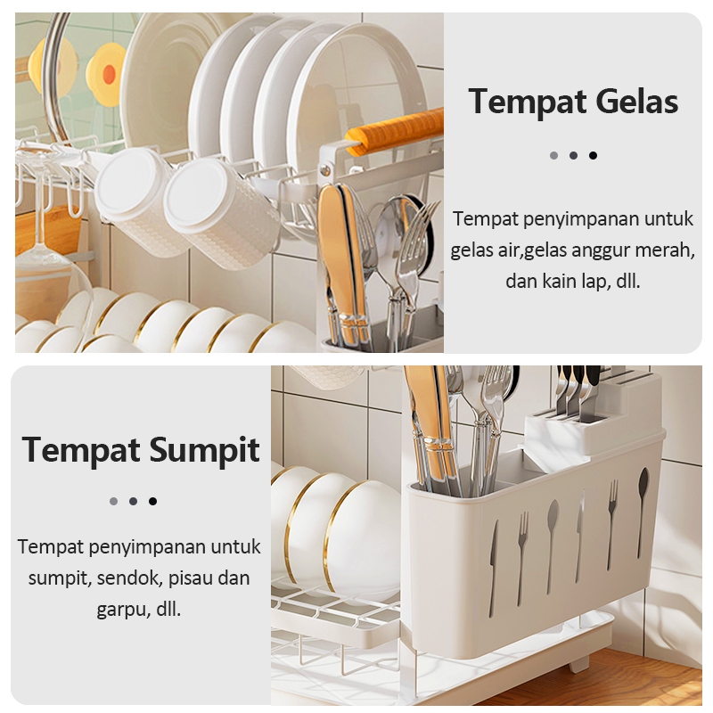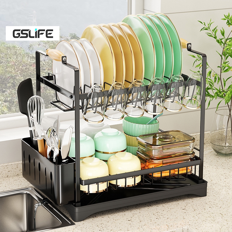 GSLIFE Rak Piring Stainless Steel Rak Dapur Rak Piring Wastafel Rak Mangkuk Piring Dengan Aksesoris