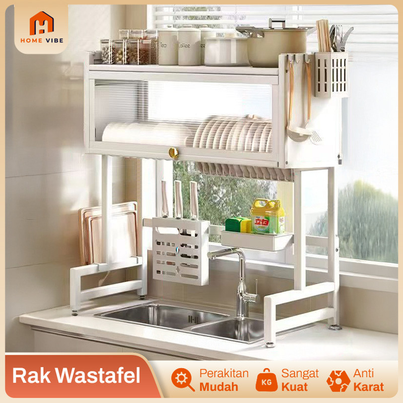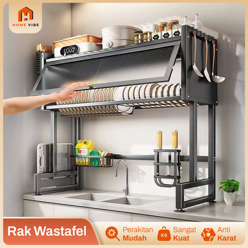Rak Wastafel Cuci Piring Tertutup Rak Piring Wastafel Rak Dapur Stainless Steel Anti Karat Minimalis