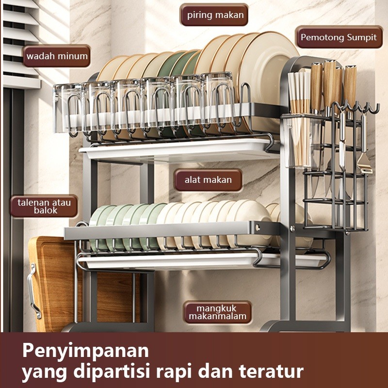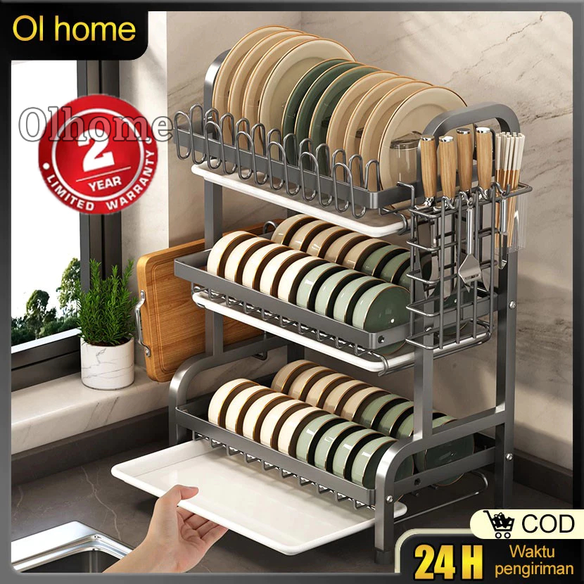 Olhome Rak Piring Dapur Stainless Steel Penyimpanan Rak Pengering Piring Rak Mangkuk Piring 2/3Susun