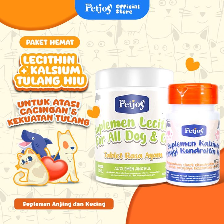 Petjoy Paket Hemat Suplemen Lecithin dengan Berat 100g + Suplemen Kalsium Tinggi Kondroitin Hiu 60 Tablet