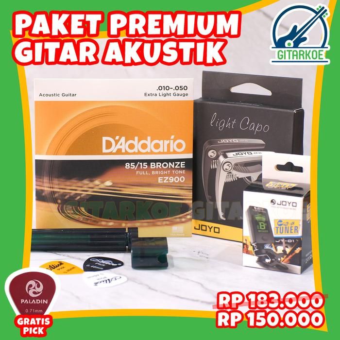 Paket Aksesoris Gitar Akustik Senar Daddario Capo Import Premium