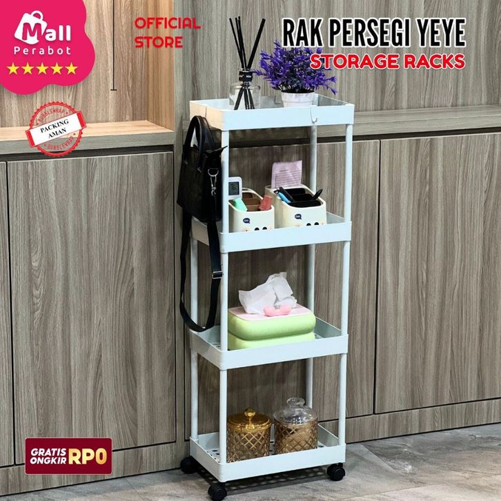 Mall Perabot | Square Rak Toilet Rak Dapur Susun Rak Yeye Serbaguna 4 Tingkat Rak Bayi NON / RODA