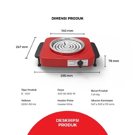 Maspion Electric Stove Kompor Listrik 1 Tungku S-300 Kompor Listrik Portable Hemat Listrik