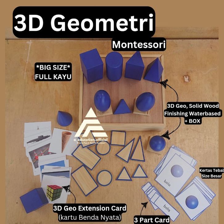 Geometri 3D Geometri Montessori big size Mainan Edukasi Kayu Wooden Geometric Solid Shapes
