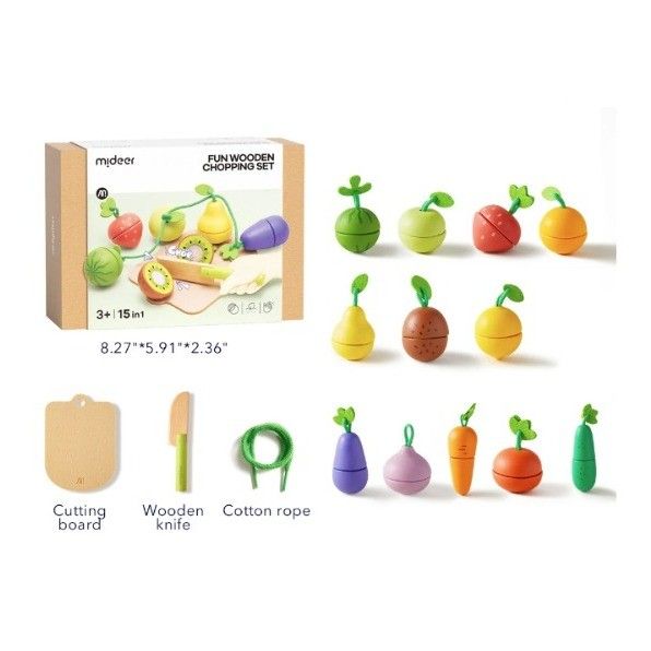 Mideer Joyful Wooden Food Chopping Set Delicious Fruit and Vegetable Shop Wooden Toys Mainan Edukasi Roleplay Anak Laki
