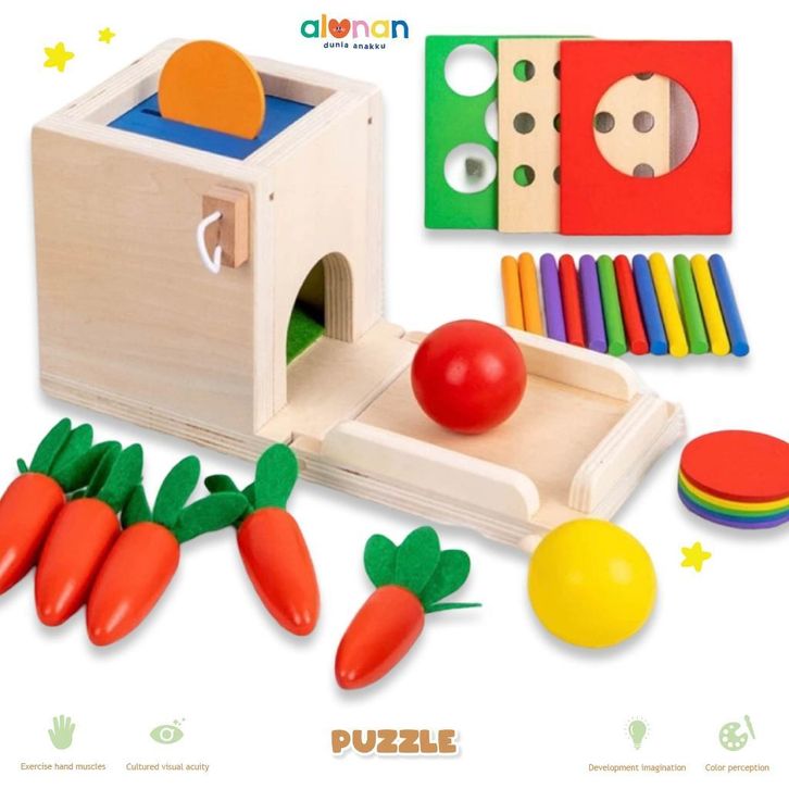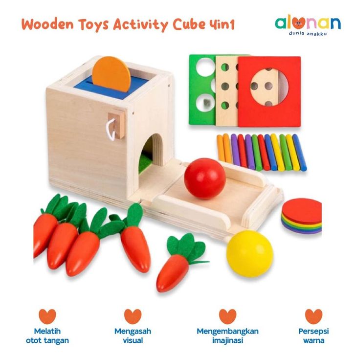 ALUNAN Wooden Toys Activity Cube 4in1 - Mainan Edukasi Kayu Anak