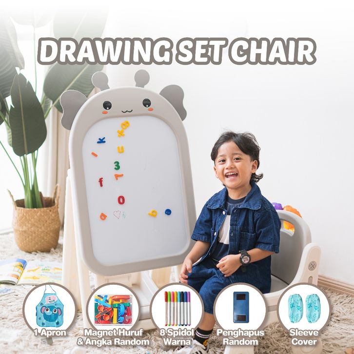 DENO Drawing Chair Set Papan Tulis Mewarnai Anak Papan Menggambar Kreativitas Anak