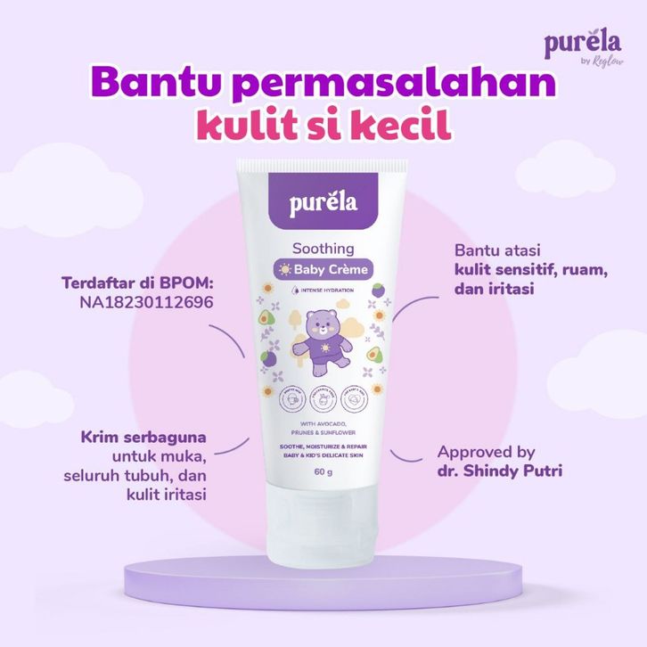 pelembab bayi Purela Soothing Baby Creme Glowing Cerah Muka dan Badan Bayi Anak Membantu Mengatasi Biang Keringat Ruam