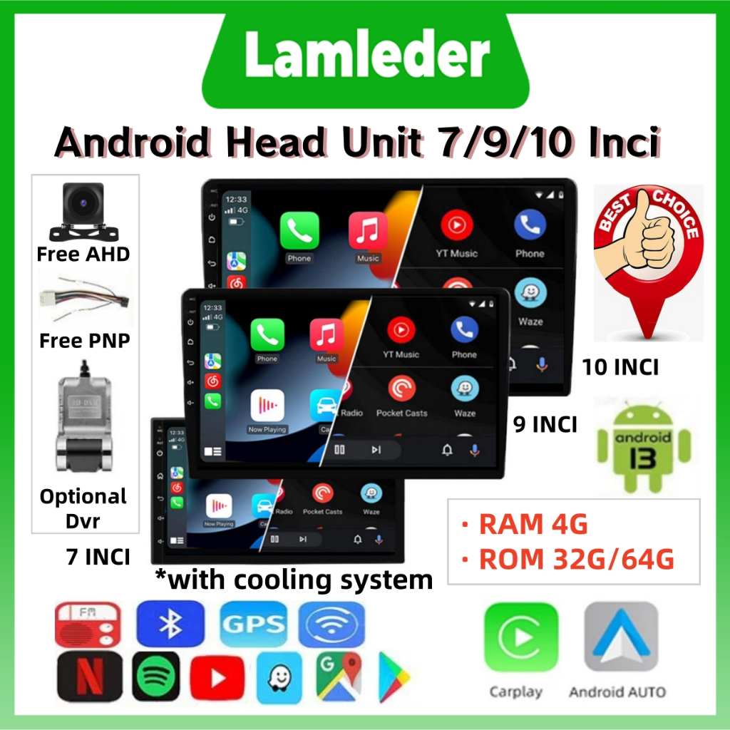 【4GB+32GB】Lamleder Head Unit Android 7/9/10 Inch Android 13 WiFi GPS IPS Screen Car Android Player Navigation 4 Core Car