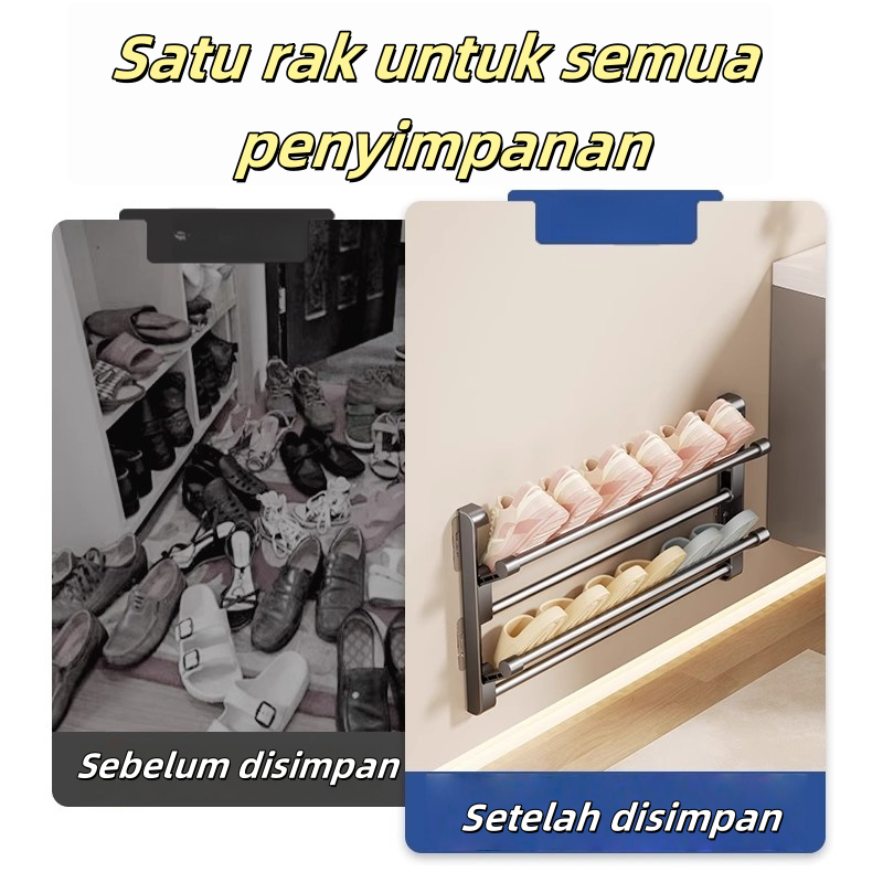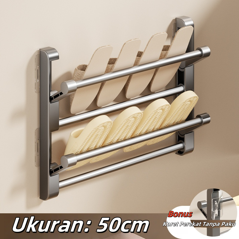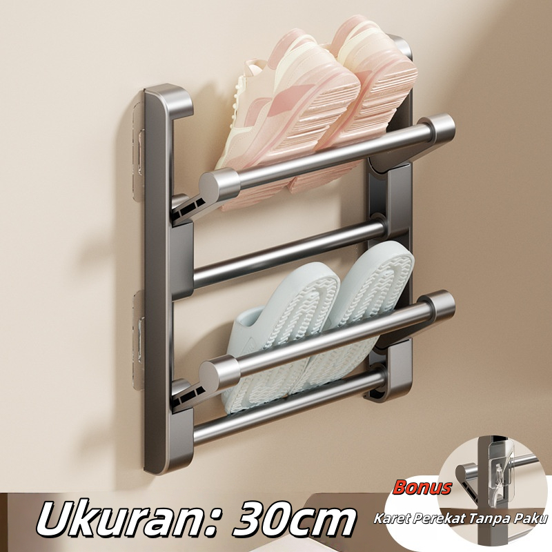 Rak Sepatu Besi Tempel Dinding Rak Sepatu 2 Tingkat Tanpa Bor Rak Lipat Tempel Dinding - Untuk Sepatu, Sandal & Kain Lap
