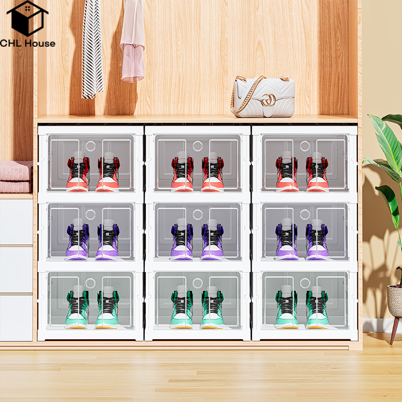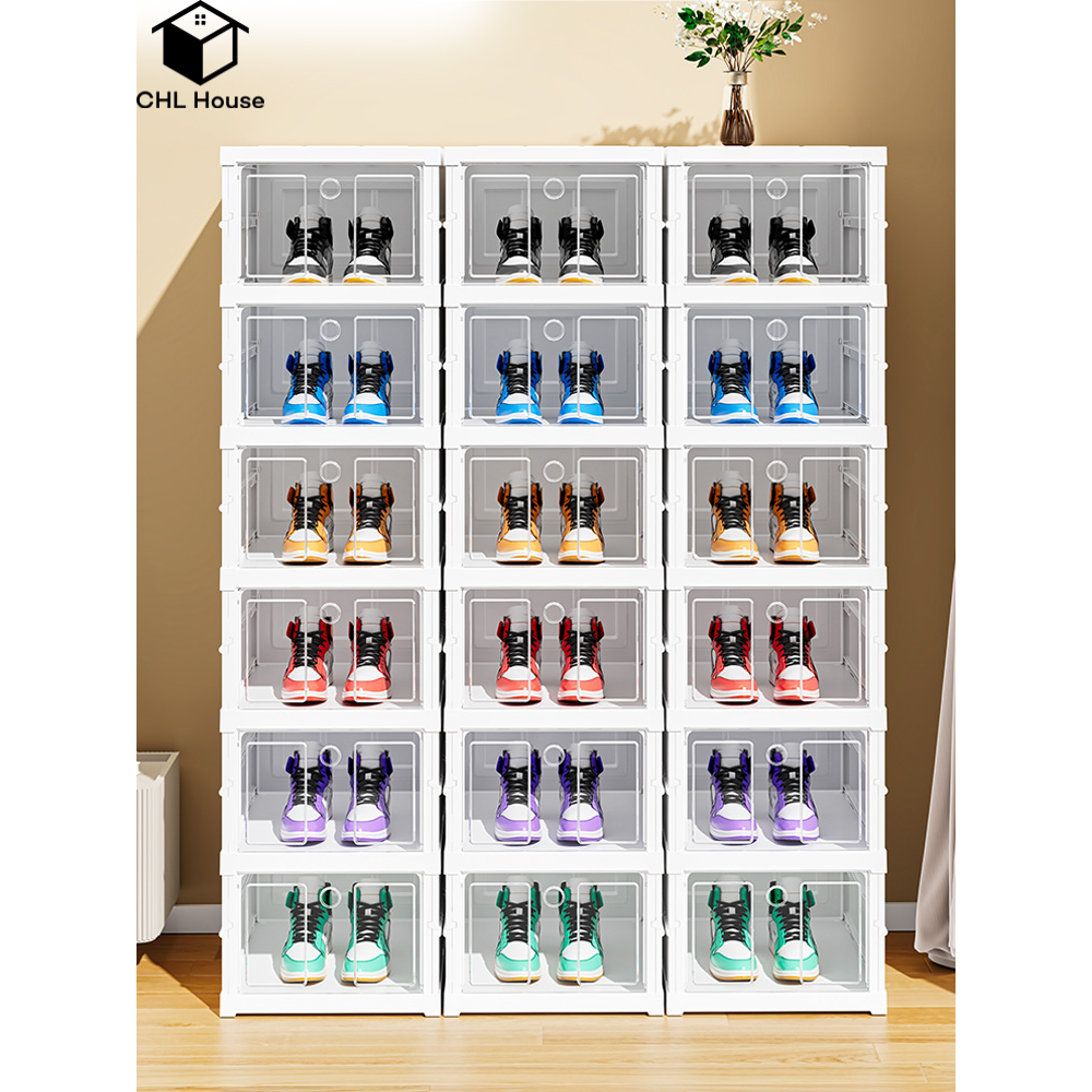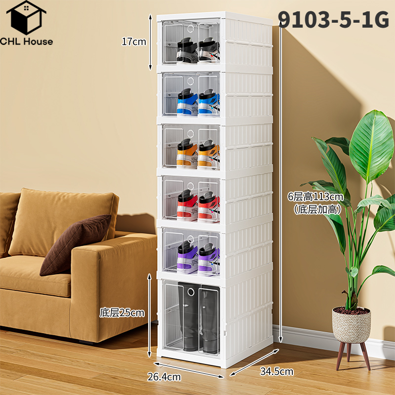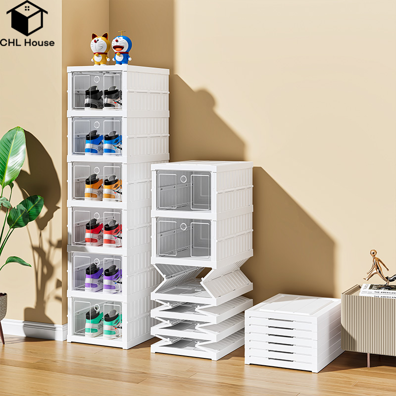 【Tidak Diperlukan Instalasi】CHL House Kotak Sepatu Lipat 3-6 layer Rak Sepatu susun tertutup Lipat Lemari Sepatu Lipat