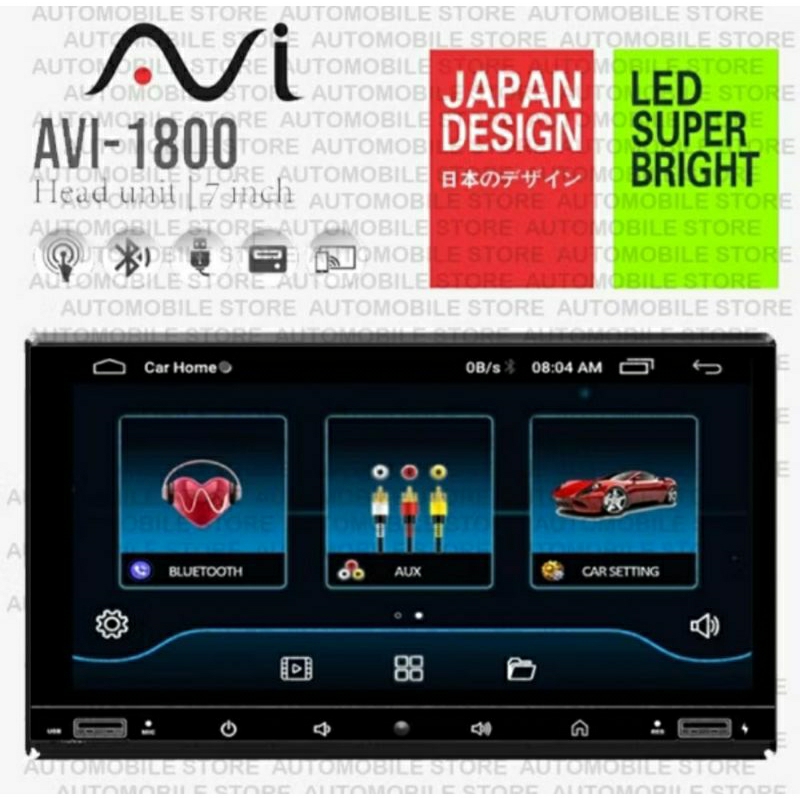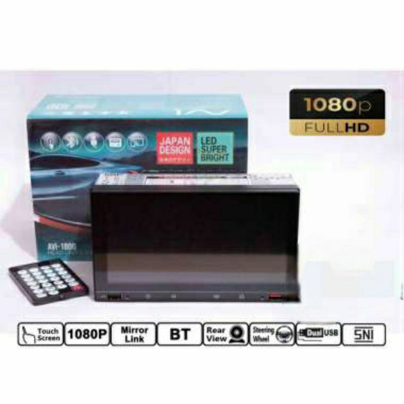 Head Unit Double Din Deckless 7 inch AVI-1800 MP5 Autolink Full Glass Panel Tombol Bawah Dos Hijau Deckles Mobil 7inch A