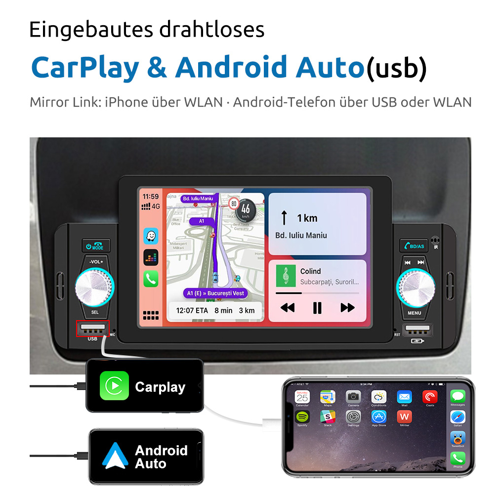 ESSGOO Head Unit 5‘’ Wince SW160C Single Din IPS Screen Carplay Android Auto GPS