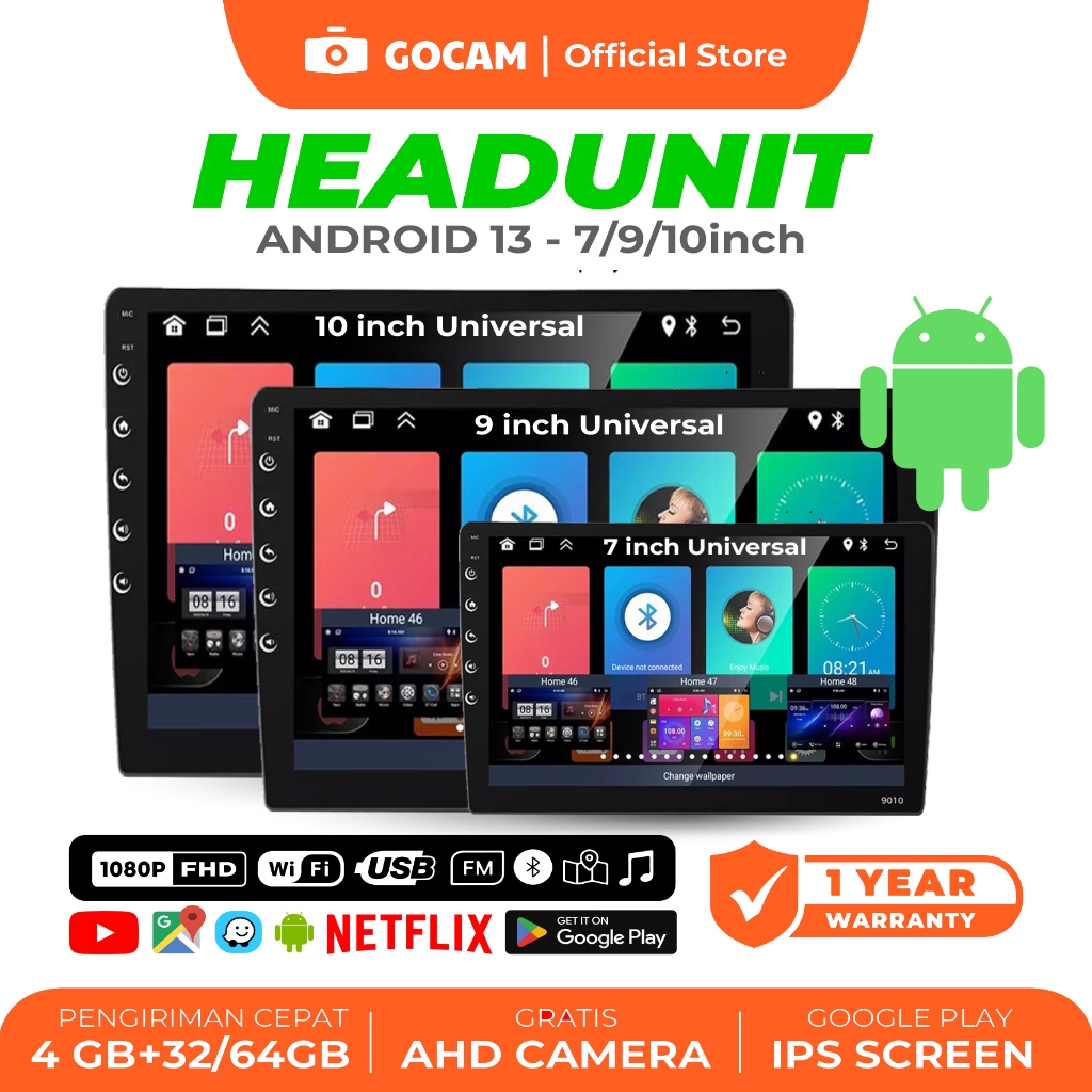 GOCAM Head Unit Android 9 Inch - 4+32/64G 7/9/10inch Cooling System Car Android 13 GPS Multimedia Navigasi Kamera Mundur