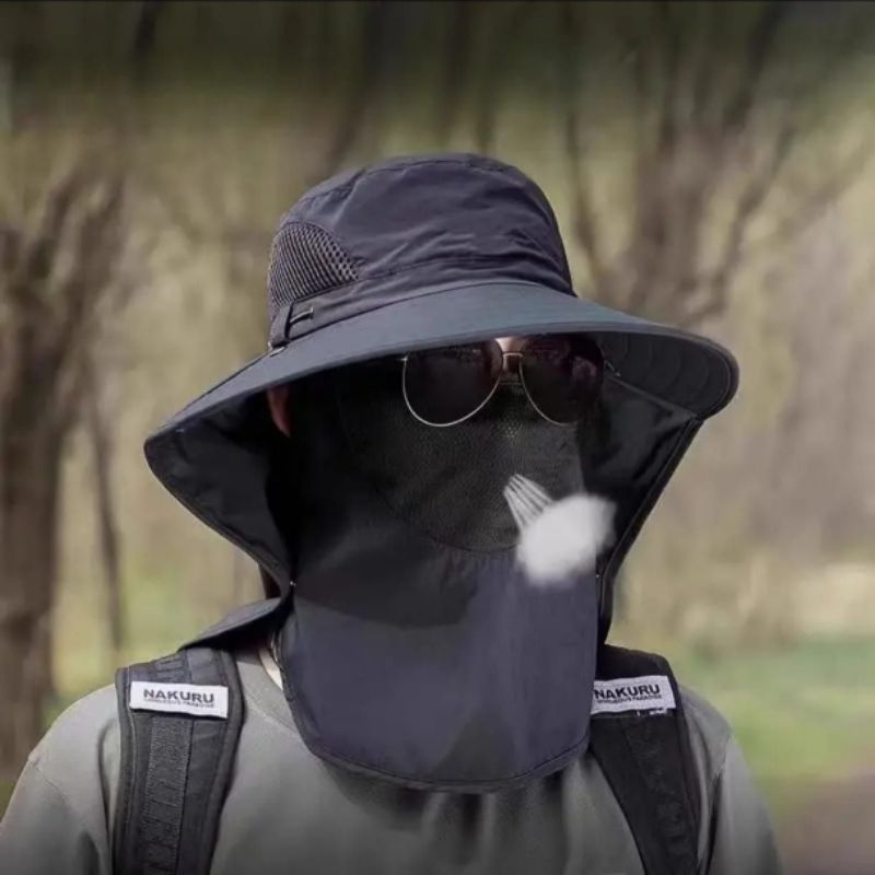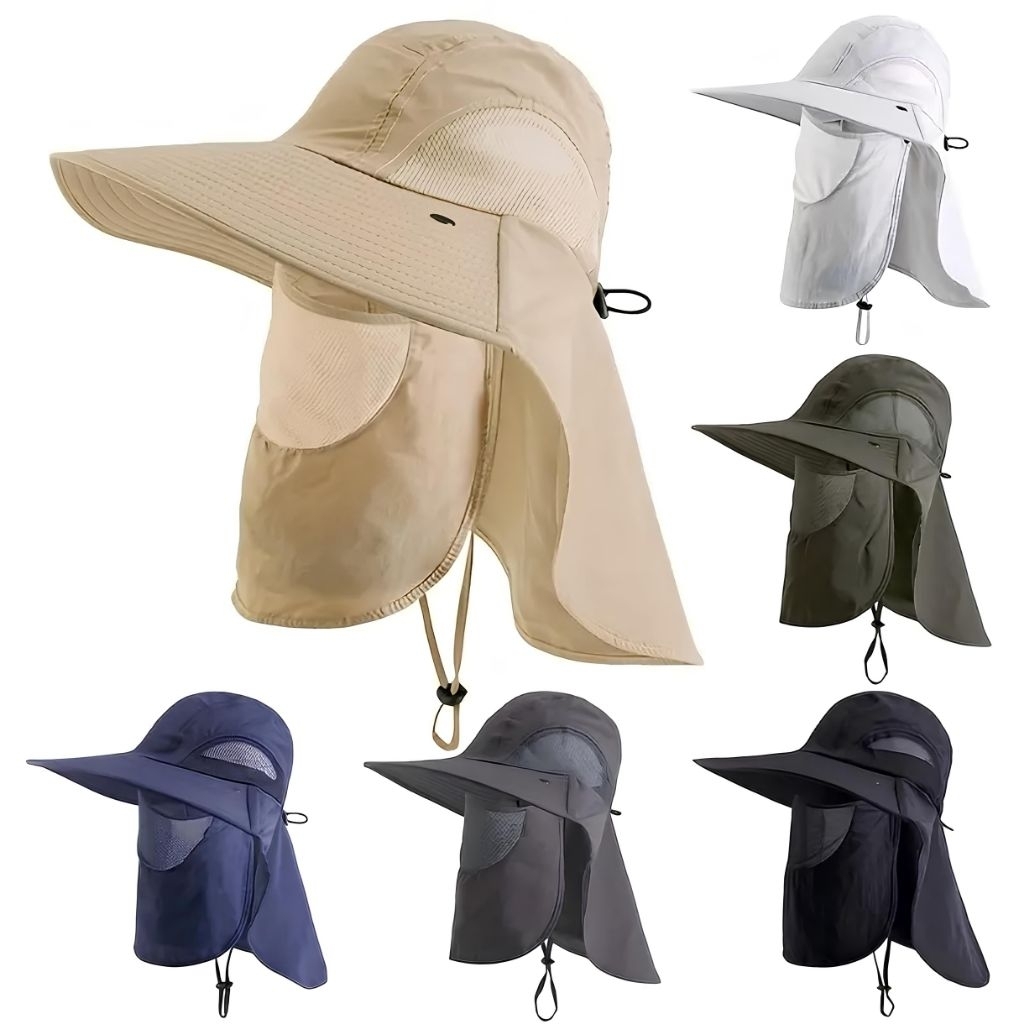 Topi Pancing Fishing Hat Anti UV Dengan MaskerPelindung / Topi Berkebun outdoor /Topi Petani Visor Lebar