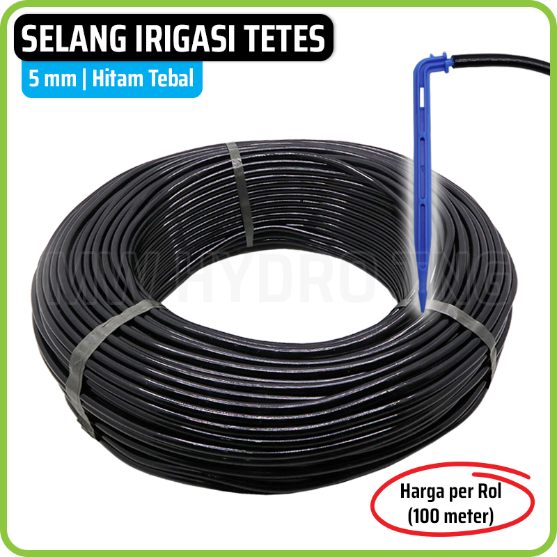 1 Rol (100 Meter) Selang 5 mm Irigasi Tetes, Fertigasi, Hidroponik - Hitam Tebal