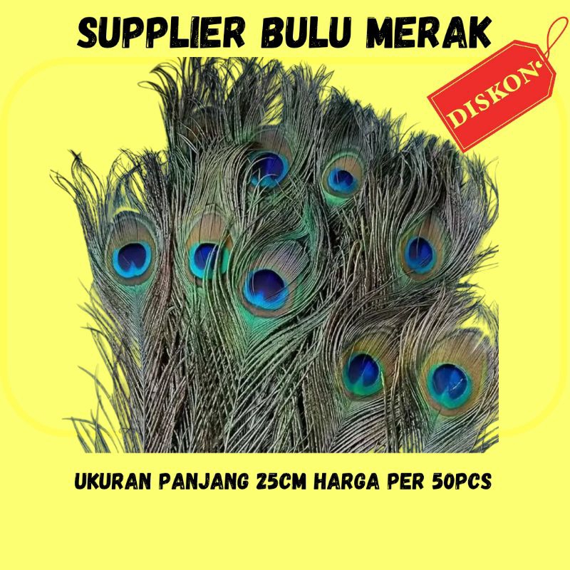 Paket 50 Helai Replika Bulu Merak Ukuran 25-30Cm Kualitas Terbaik