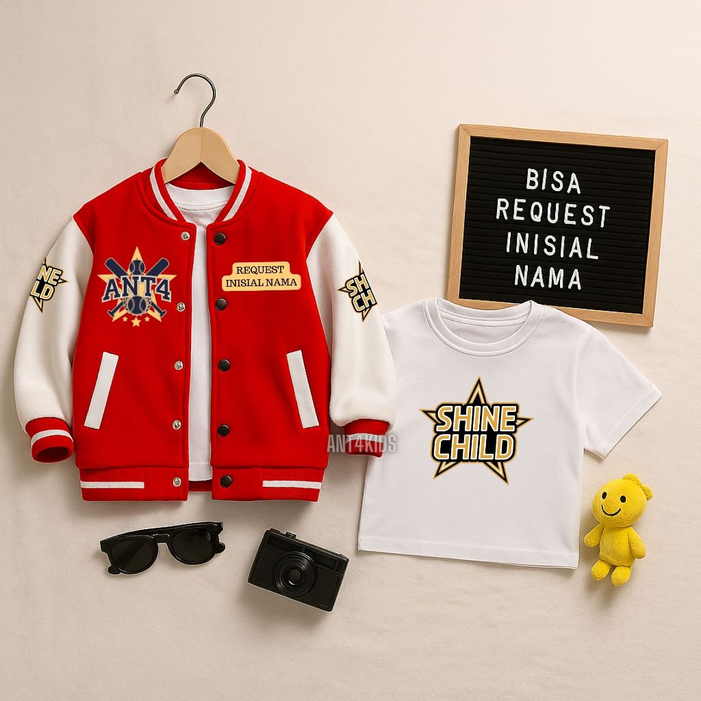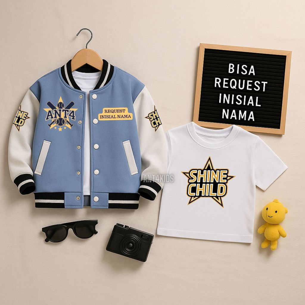 [Star]STELAN JAKET BASEBALL + KAOS ANT4 CUSTOM HURUF ANAK LAKI LAKI PEREMPUAN USIA 2 - 12 TAHUN - sty02