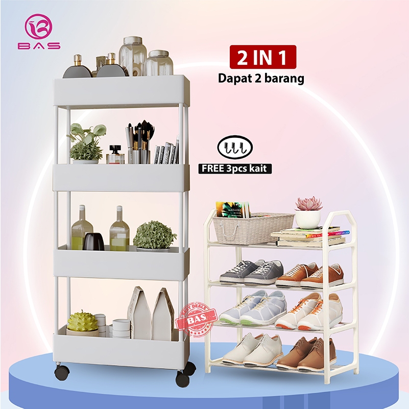 BAS combo 2 in 1 () square rak susun 4 tingkat dengan roda + rak sepatu 4 layer