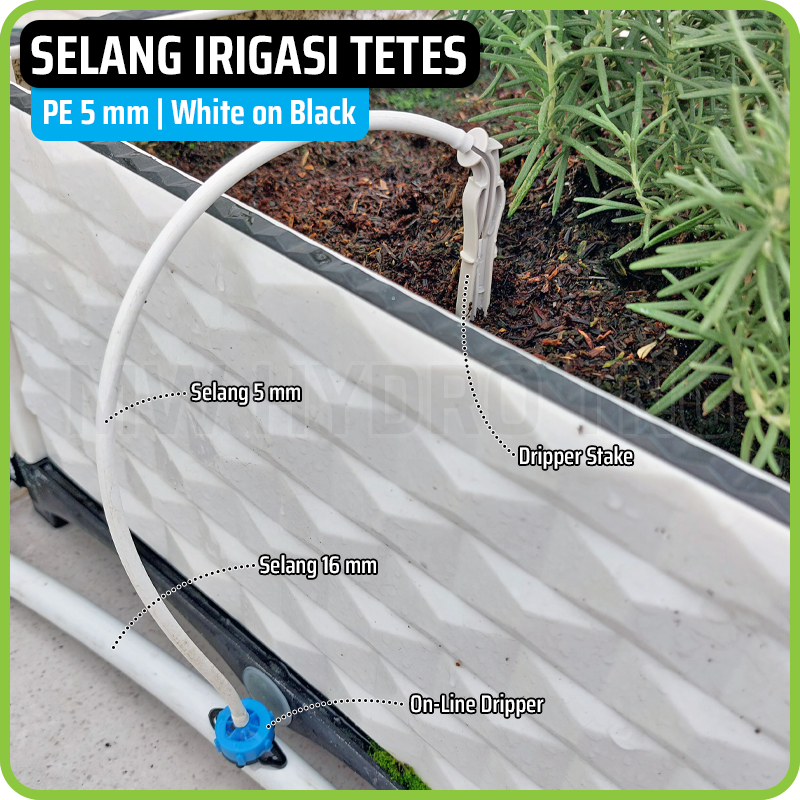 1 Rol Selang 5 mm Irigasi Tetes, Fertigasi, Hidroponik - Putih Hitam