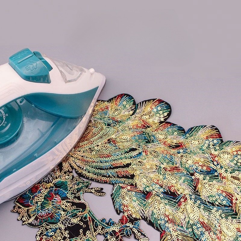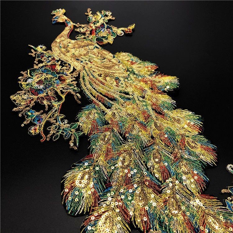 Tempel Bordir Peacock 47cm Bordir Burung Merak Full Payet Sequin Bordiran Mewah