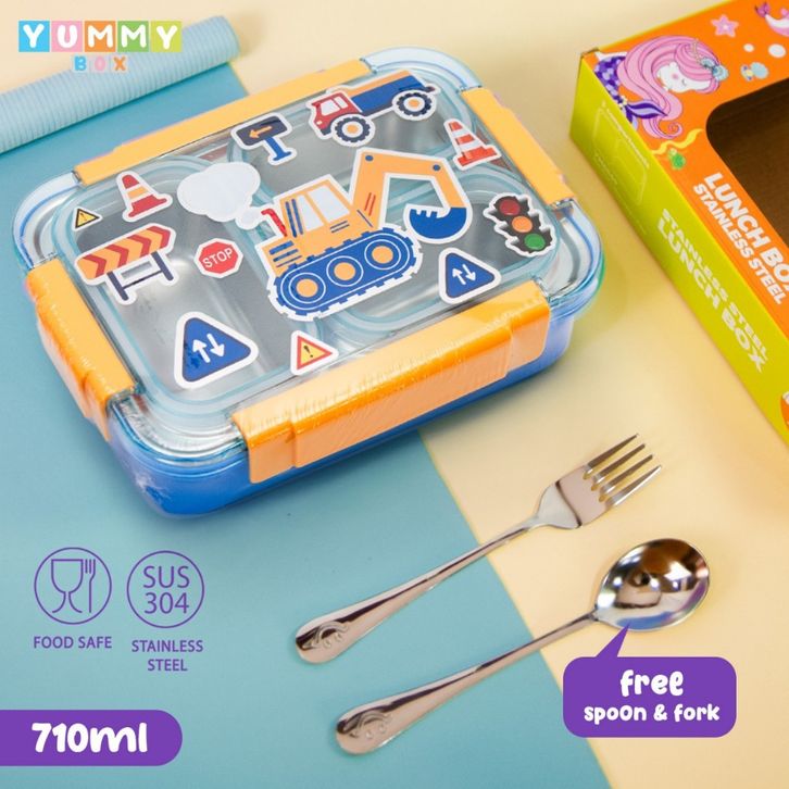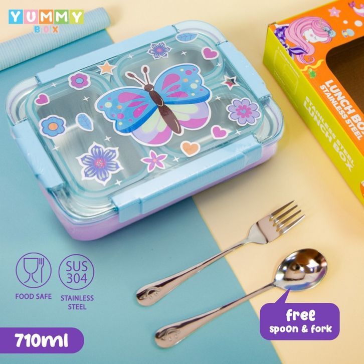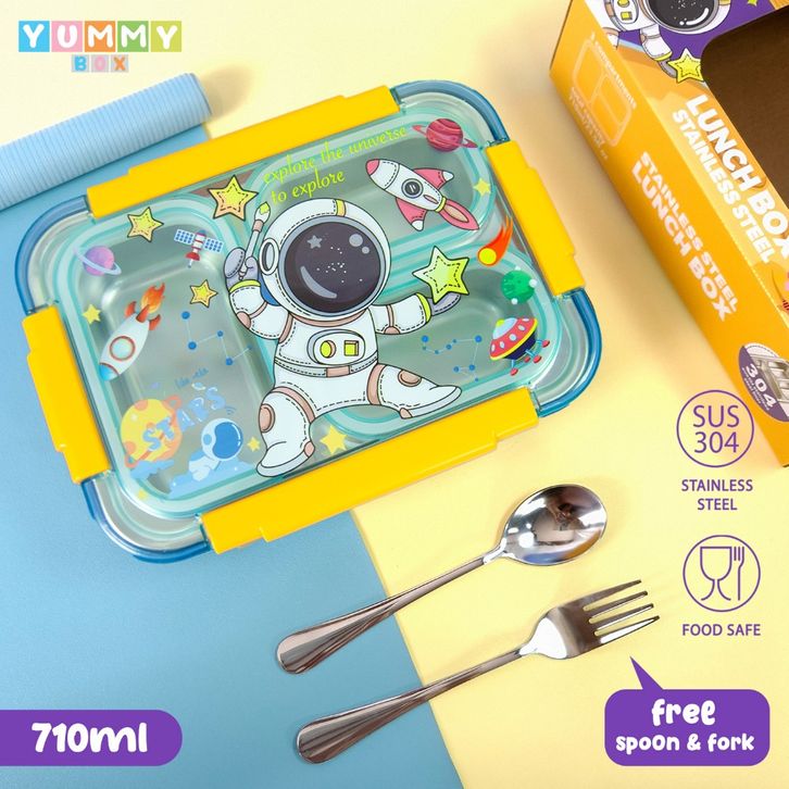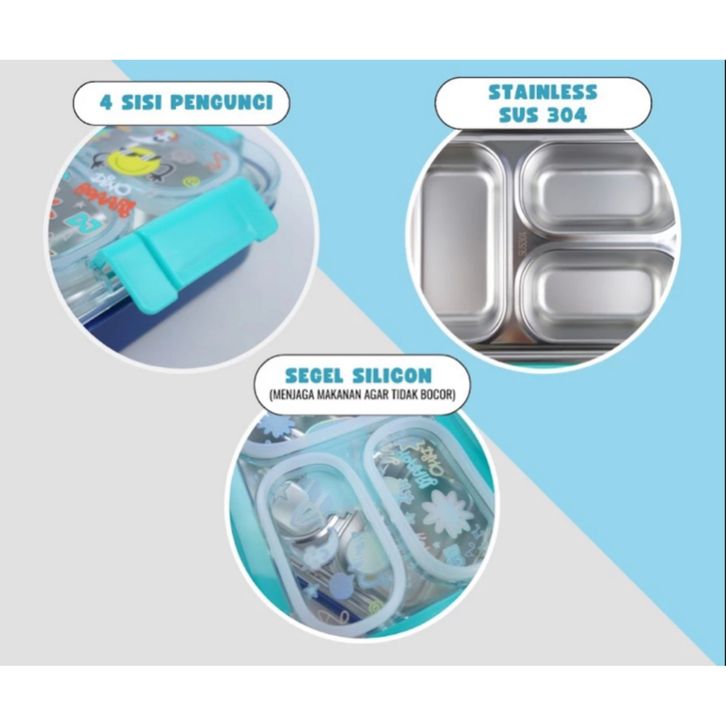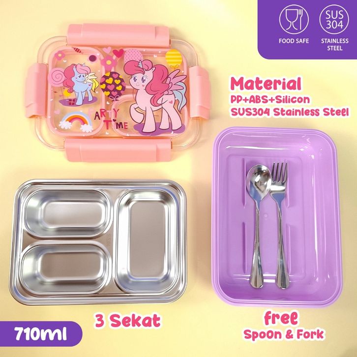 Lunch Box Set Anak Stainless Sekat 3 Volume 710ml Gambar Karakter Lucu