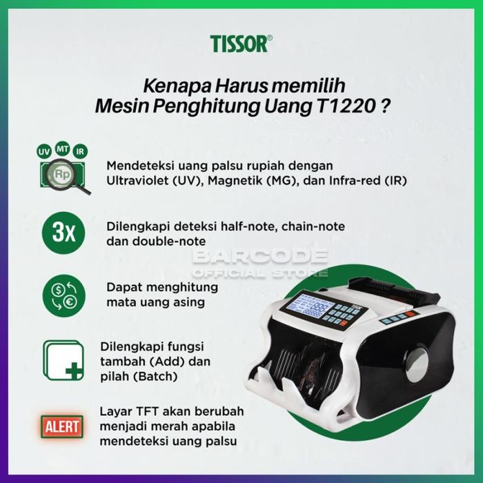 MESIN PENGHITUNG UANG TISSOR T1220 HITUNG DETEKSI UANG ASLI / P4LSU - T1220
