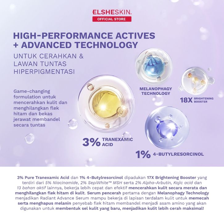 Elsheskin Radiant Advance Serum 20ml Brightening Serum Cerahkan Kulit Kusam Mencerahkan Maksimal dan Samarkan Noda Hita