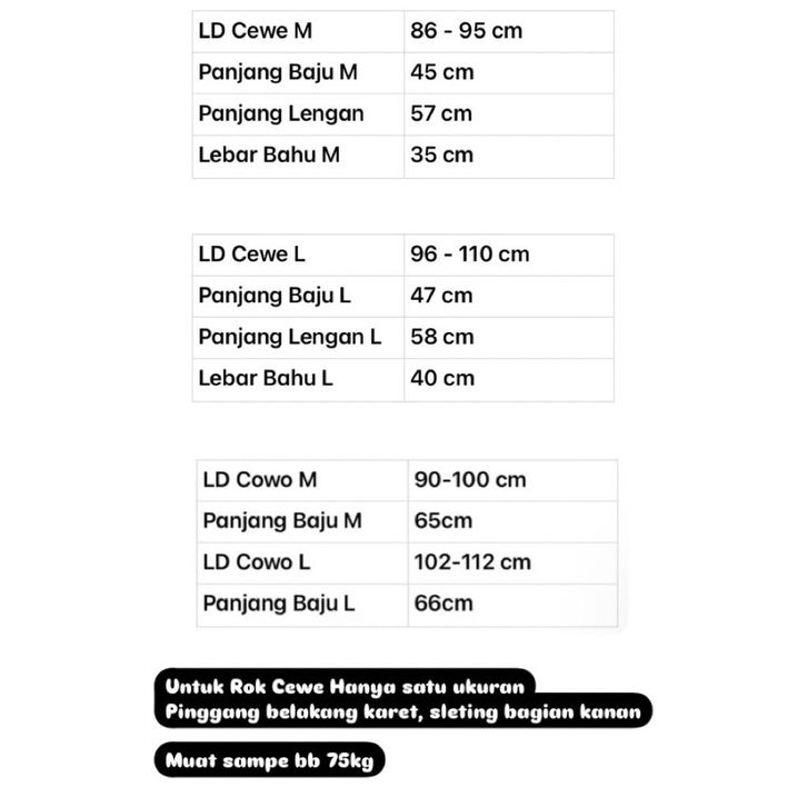 Baju Cewe L & Cowo L, Baju Cewe L & Cowo M, Baju Cewe M & Cowo L, Baju Cewe M & Cowo M, Kemeja Cewe Love L, Kemeja Cewe Love M, One Set Cewe L, One Set Cewe M, Roknya aja