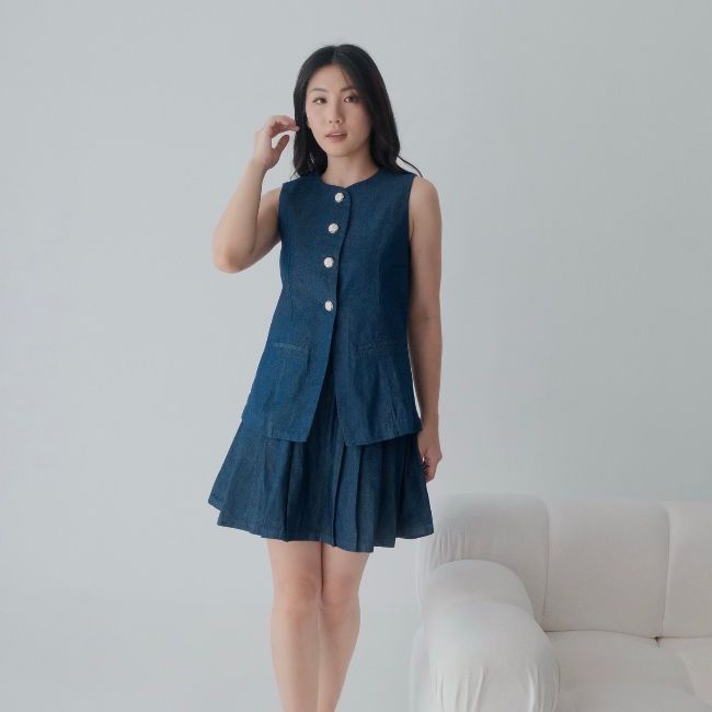 HAZEL Rowan Denim Set | Vest Denim Wanita Skort Denim Wanita Set Denim Wanita Premium Korean Style