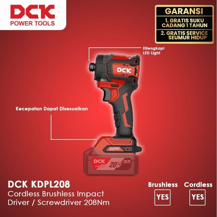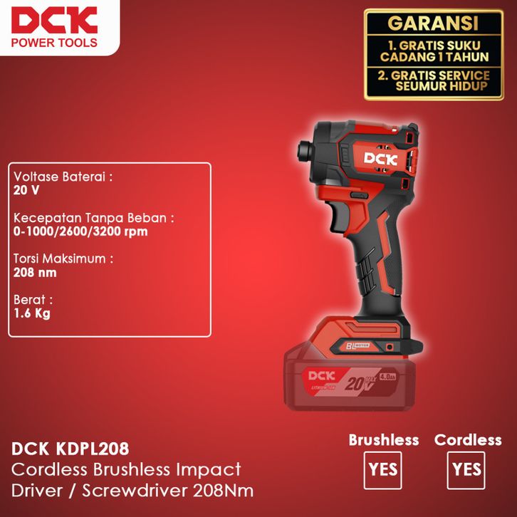 DCK KDPL208 Cordless Brushless Impact Driver / Screwdriver 208Nm