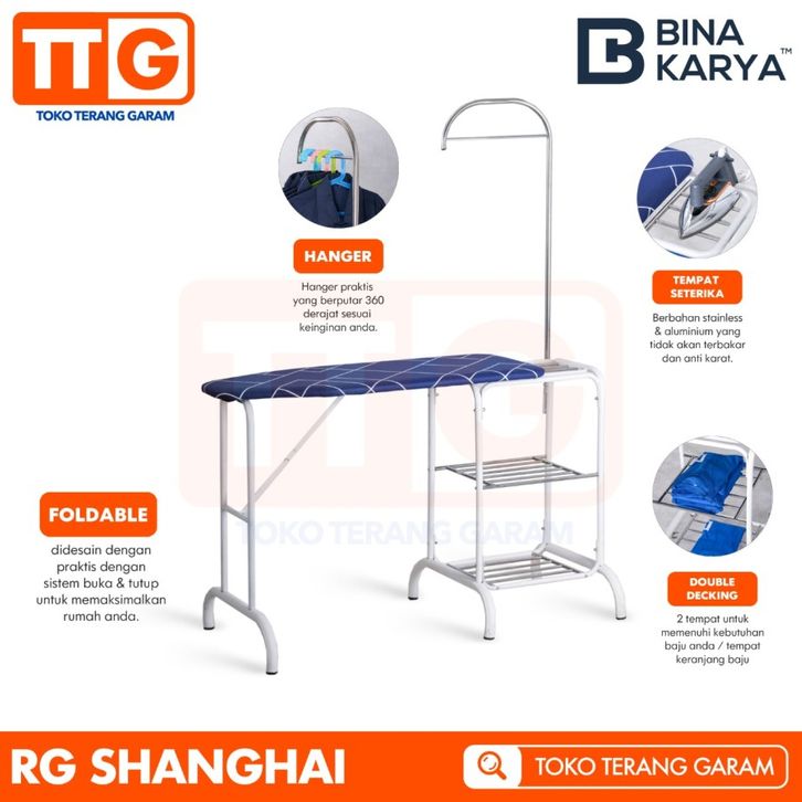 BINA KARYA MEJA SETRIKA / RAK GOSOK ALUMINIUM MULTIFUNGSI - SHANGHAI