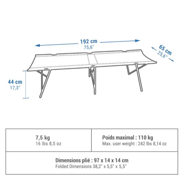 QUECHUA Ranjang Lipat Kemah Camping 65 cm Untuk 1 Orang