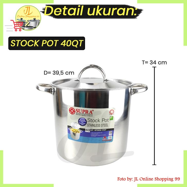 SUPRA stock pot 40qt 38liter / panci tinggi jumbo stainless + tutup / panci rebus sayur