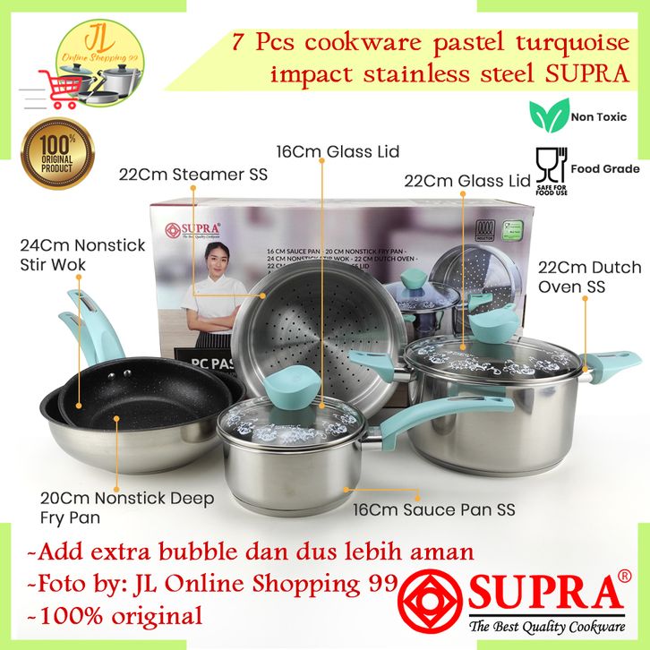 Panci set 7pcs cookware set stainless impact pastel Turquoise SUPRA / Wajan set induksi