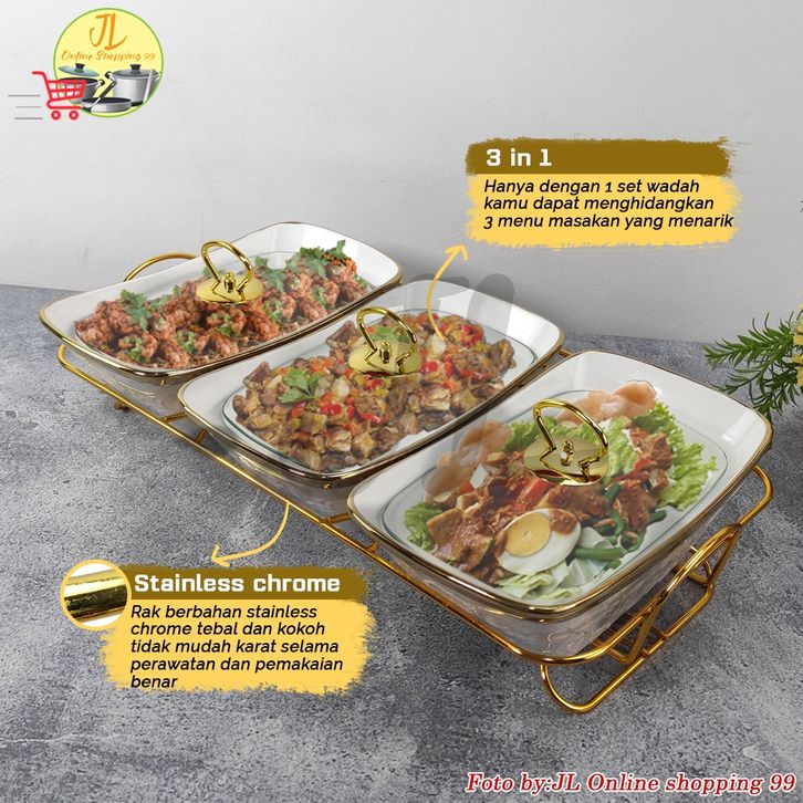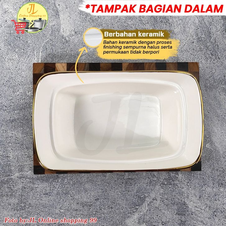 FIORENZA 7pcs prasmanan set segi + tutup + rak motif linning gold deluxe series keramik type LGM-988GL