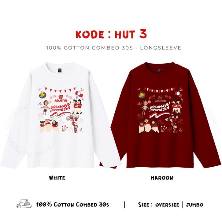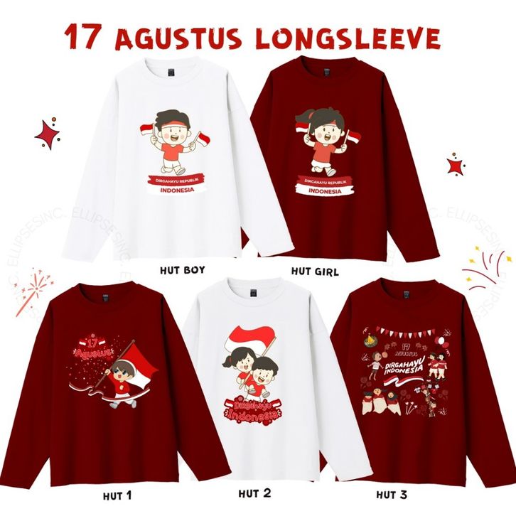 ELLIPSESINC Kaos Oversize Lengan Panjang Unisex 17 Agustus HUT RI Merdeka