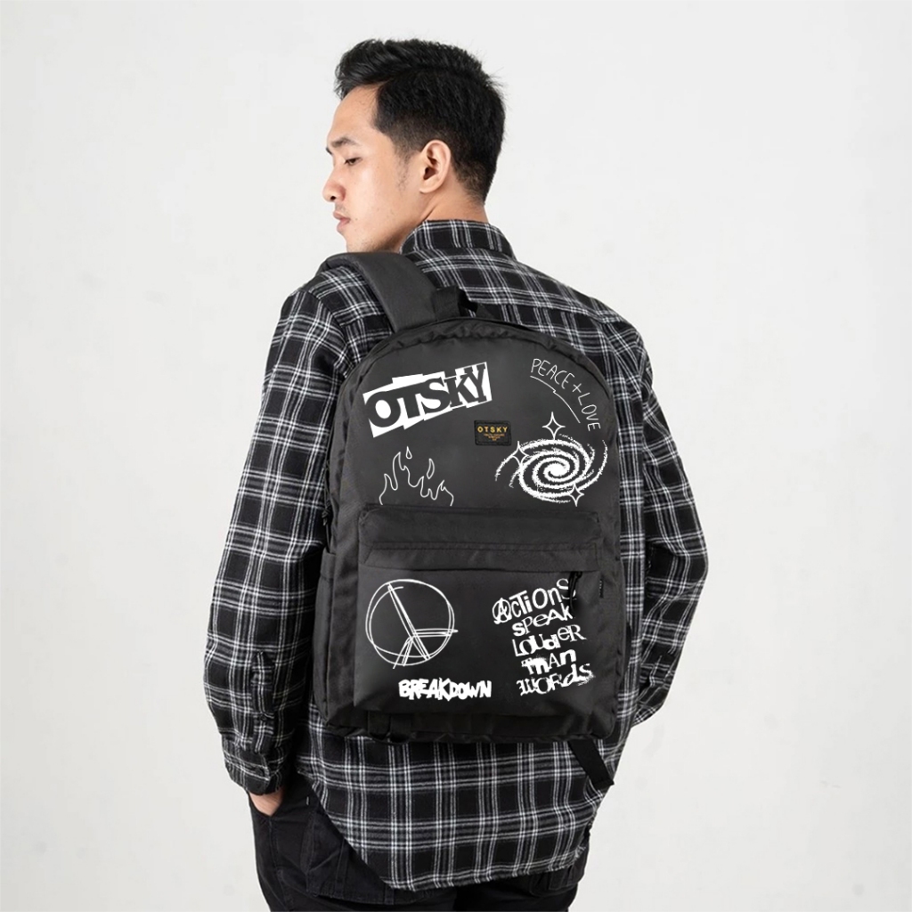 Otsky Backpack Tas Ransel Sedang Kampus Sekolah Breakdown Sablon Premium 2B