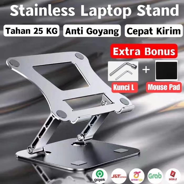 Aluminium Laptop Stand Foldable Dudukan Laptop Holder/Stand Portable Adjustable Laptop Stand, Computer Stand With 360 Ro