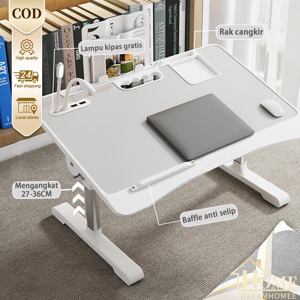 Meja Lipat Laptop Belajar Foldable Bed Table Adjustable Serbaa With USB Port Meja Portable