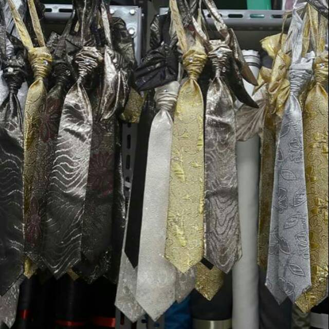 dasi kerut motif, dasi model panjang, dasi + saputangan