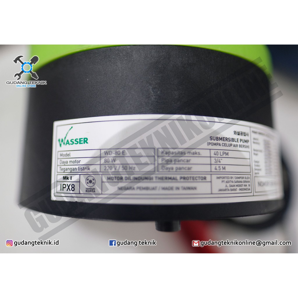 Pompa Celup Wasser WD 80 E / Pompa Submersible Wasser WD80E Pompa Taman Akuarium dan Kolam