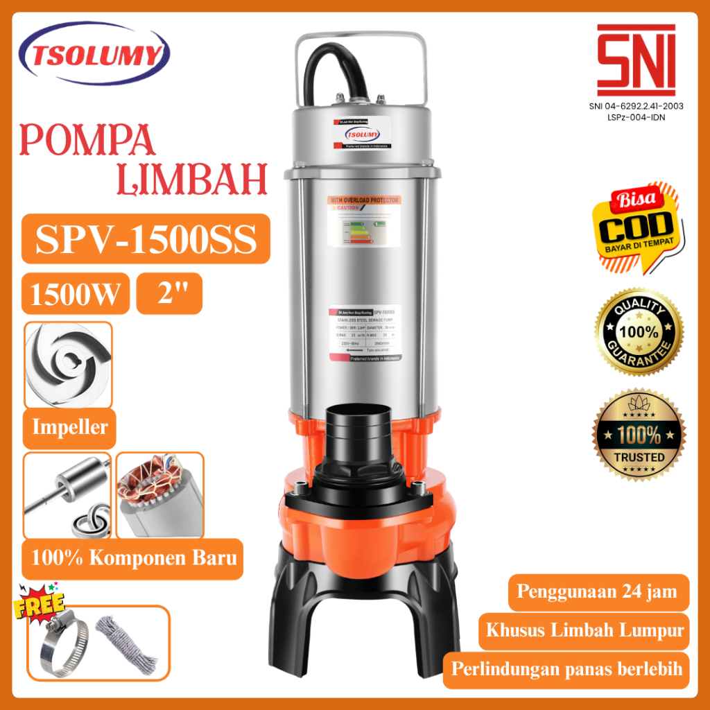 Tsolumy Pompa Celup Air Kotor SPV-1500SS Sewage Pump2" Pompa Lumpur Kolam Ikan / Pompa Limbah