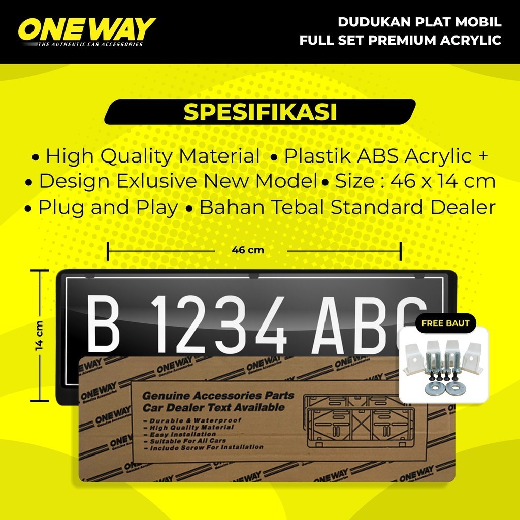 OneWay Cover Tempat Dudukan Tatakan Plat Nomor Mobil Astra Akrilik Mika Hitam Putih SET Baut