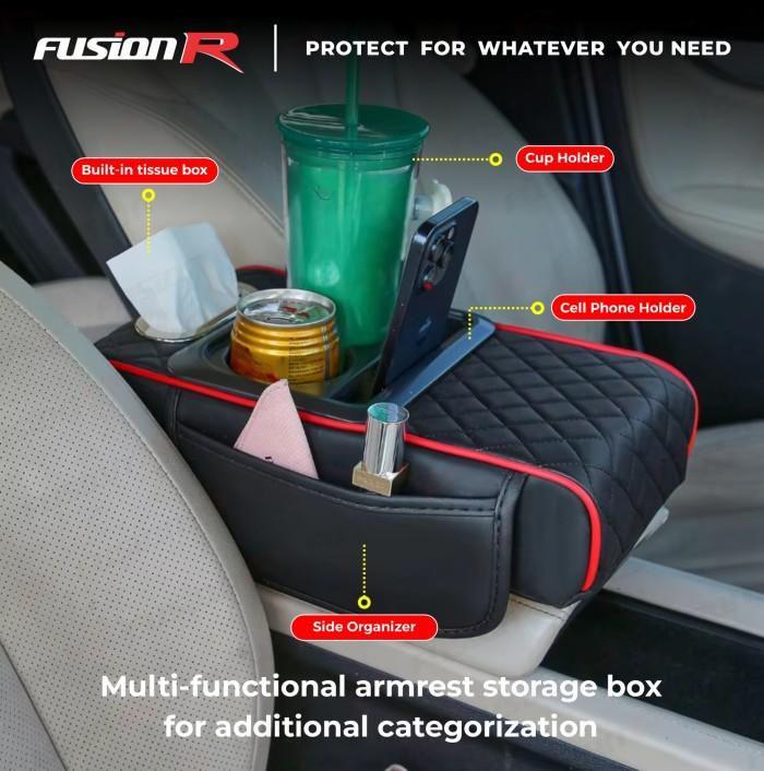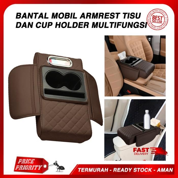 [Star]Bantal Mobil Armrest Sandaran Tangan Dengan Tempat Minuman, Tisu, dan Penyimpanan Serbaguna - Brown