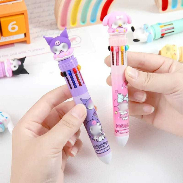 HC Pena Mekanik Karakter Kartun Pulpen 10 Warna Lucu 3D DOLL Bolpen Gel Tinta Donat Animasi 10 Warna Alat Tulis Sekolah
