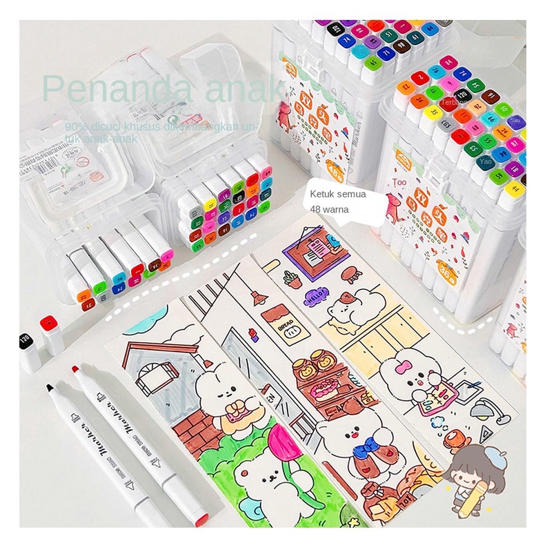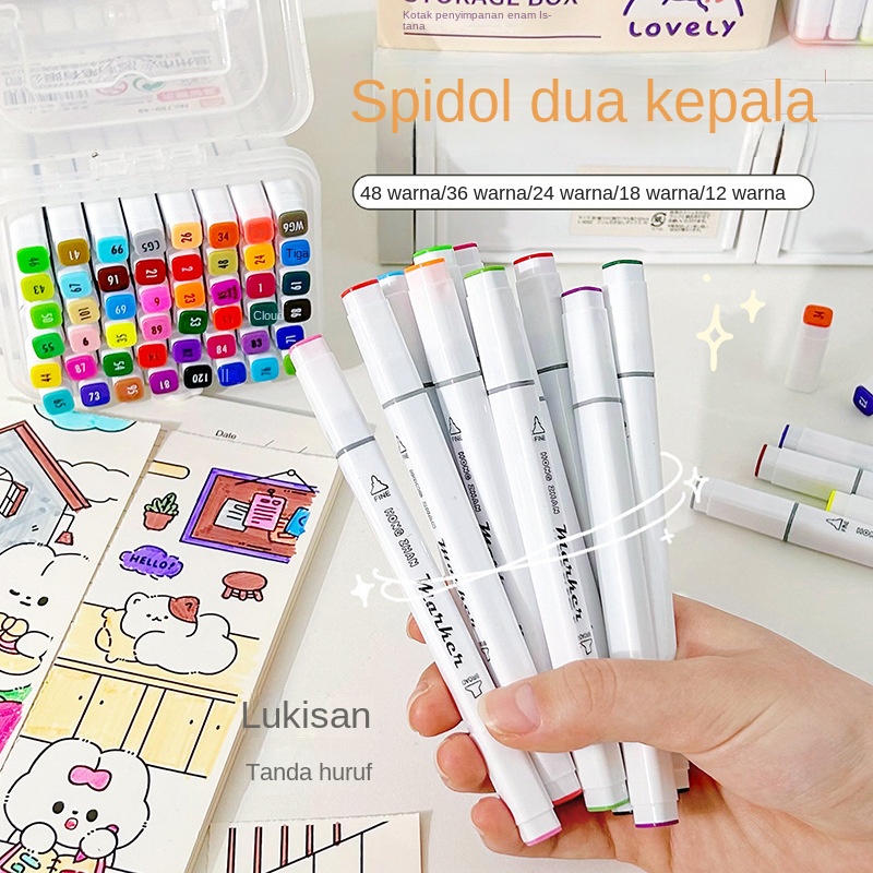 Spidol Berbasis Minyak Ujung Ganda Set Lengkap Spidol Anak 12-48 Warna Pensil Cat Air Set Warna