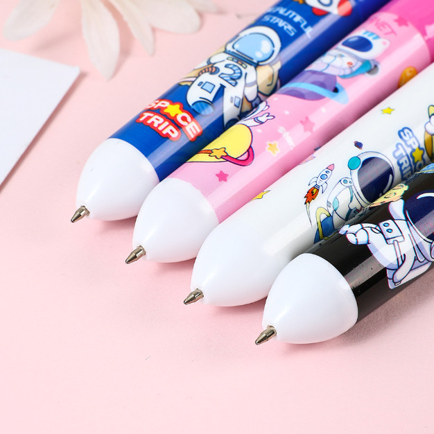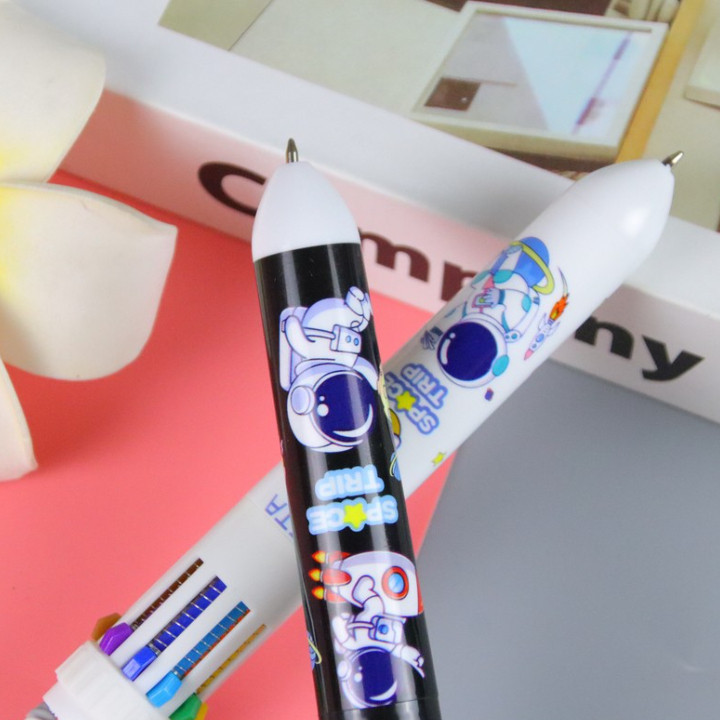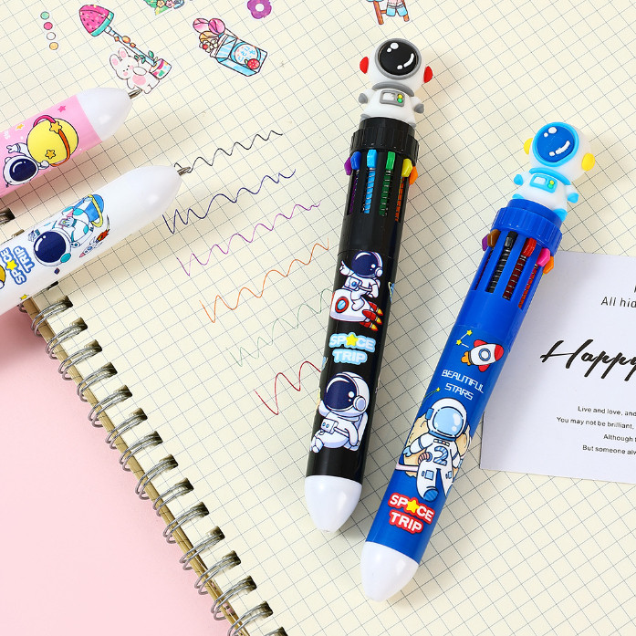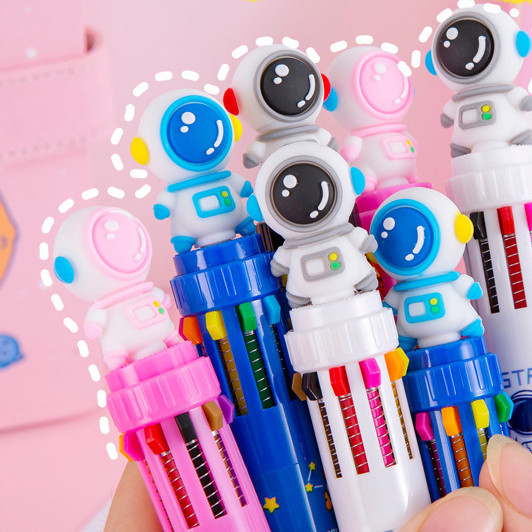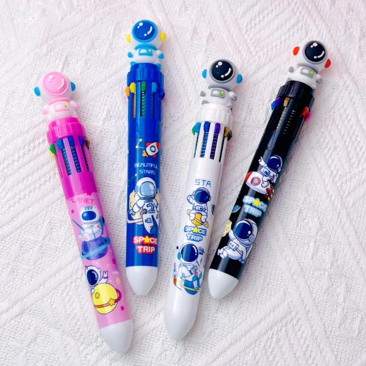 Grosir - S6221 Pulpen Mekanik 10 Warna / Bolpoin Lucu Karakter Astronot / Pena Sekolah Multi Warna / Bolpoin 10 Warna Ka