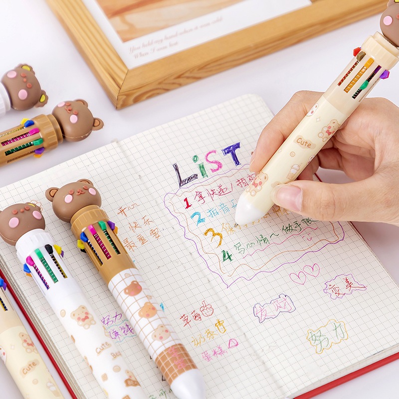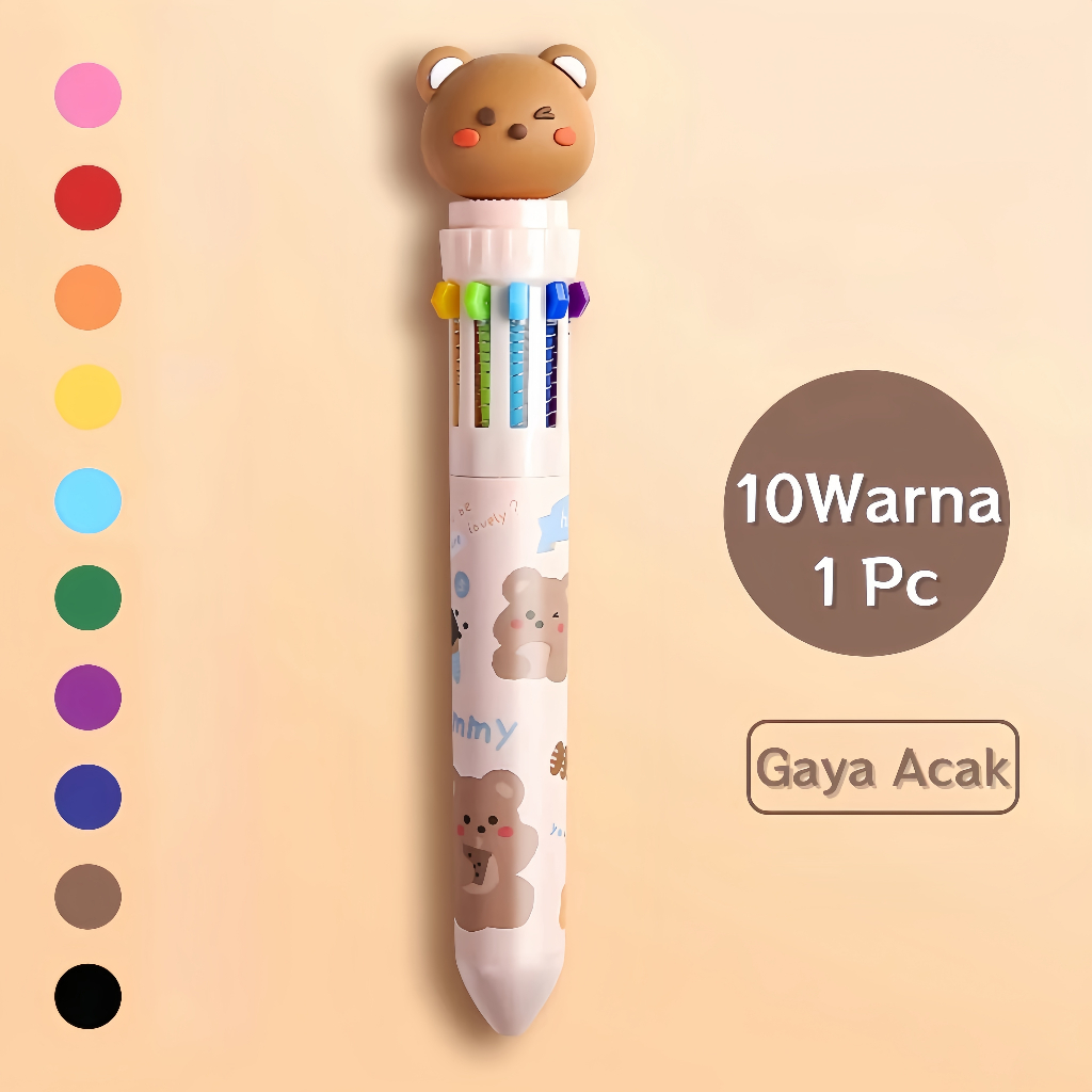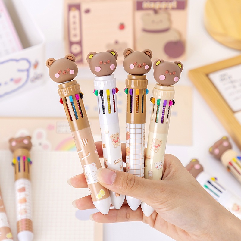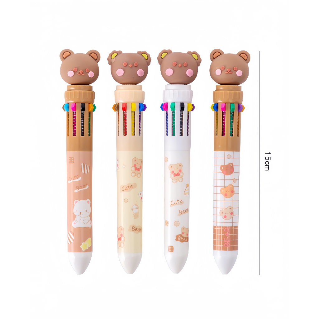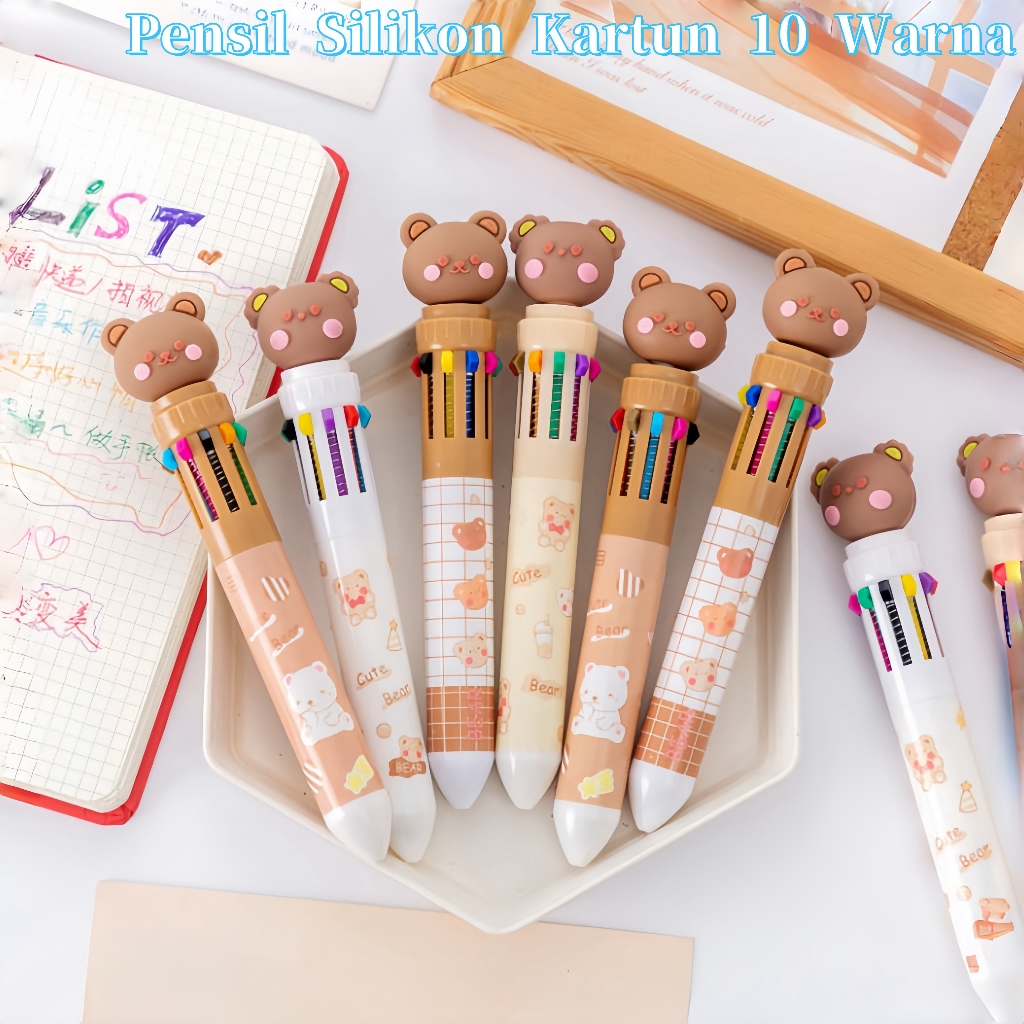 Silikon kartun pensil bolpoin Pulpen 10 Warna Teddy Bear Pena Warna Super Lucu Motif Beruang