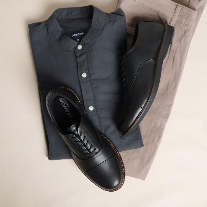 Sepatu Kulit Asli Pantofel Forma Pria | Story Of Monday | Oxford Black ( Genuine Leather ) Shoes Kerja Hitam Kasual - Fu